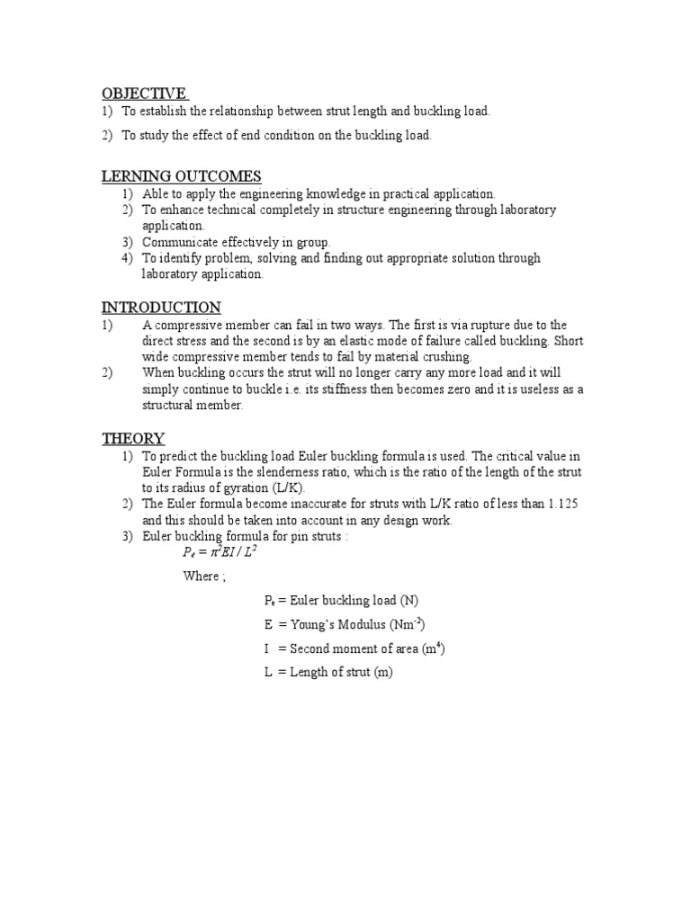 Buckling Of Strut Report Pdf Buckling Chemical Product Engineering