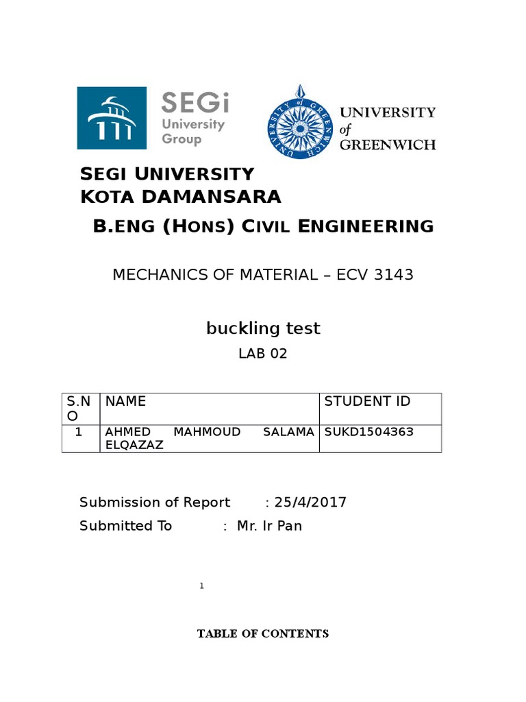 Doc Buckling Test Lab Report Lecturer Ir Pan Group 7 Murli Manohar Bhatia Academia Edu