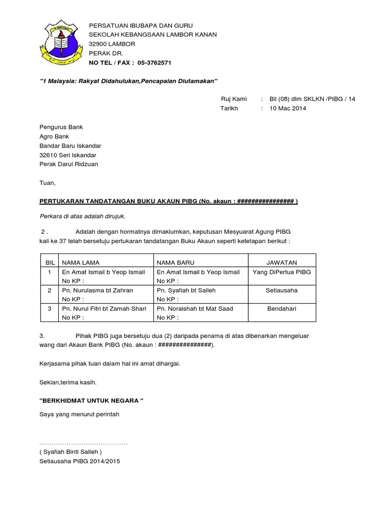 Surat Tukar Penama Akaun Bank Pibg Pdf